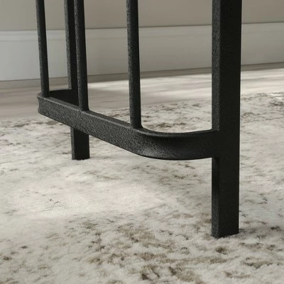 Find the motivation to tackle all your big projects when you add the rustic-inspired style and functional design of the L-shaped desk from the Station House® collection. This home office desk offers a spacious top surface with ample room for your office essentials like notepads, a table lamp, laptop, and hot cup of coffee. The small storage drawer opens and closes on smooth metal runners for easy-access storage of all your miscellaneous supplies. The lower drawer with full extension slides can organize letter-size hanging files. Need more? This small office desk also includes a cubbyhole area to conveniently store papers and binders. Other features include two desktop grommets for cord management. Attractive from every angle, this L-shaped desk with storage is finished on all sides for versatile placement. Finished in Etched Oak™ and detailed with a textured, powder-coated metal frame, this industrial L-shaped desk will inspire you to work.