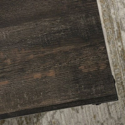 Rustic-inspired style is just what you need to get motivated for your next big project. Update your home office or workspace with the one-of-a-kind design and beauty of this desk from the Steel River collection. Its spacious top surface provides you with the room you need for all your desk essentials like your laptop, a cup full of pens, a stack of notepads and of course your coffee mug. It also has room for items like picture frames and knick-knacks too. This computer desk features two drawers that open and close on smooth metal runners. The pencil drawer is ideal for easy access storage of items like pencils, paper clips, and rubber bands. The large lower drawer is great for storing books, magazines, and other miscellaneous items. It also includes an open shelf for additional storage space. This home office desk features a textured, powdercoated metal frame and rear crossbars for stability. Finished on all sides in Carbon Oak, this handsome office desk is just what you’ve been looking for.