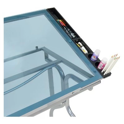 Upgrade your creative workspace with the Folding Craft Station from studio designs. This glass tabletop adjusts to six different angles, ranging from zero to 35 degrees, to accommodate your various projects, while the heavy-gage steel frame offers great durability. Four removable side-trays hold your supplies and a pencil ledge also holds your crafting tools. If you’re looking to trace something, the tempered safety glass top makes it easy to do – the glass top can be used with light pads or light boxes (sold separately).