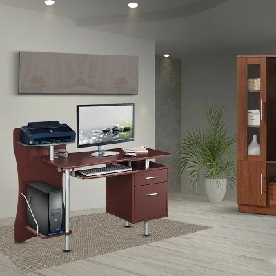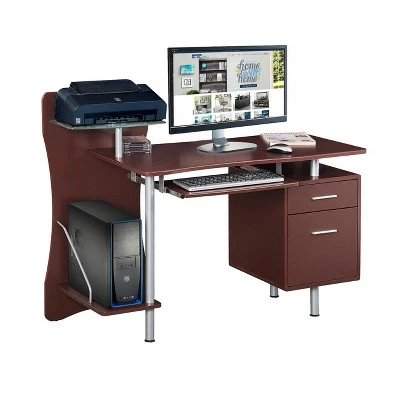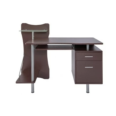This Techni Mobili Computer Desk adds convenience and style to your work space. This desk has plenty of room for your computer, printer, hanging files, and much more. The desk has multiple compartments for storage and space to display decorative items. This computer desk will solve all your organizational issues. The Techni Mobili desk has MDF wood construction in Chocolate color, with a PVC laminated surface providing strength and durability. Color: Chocolate