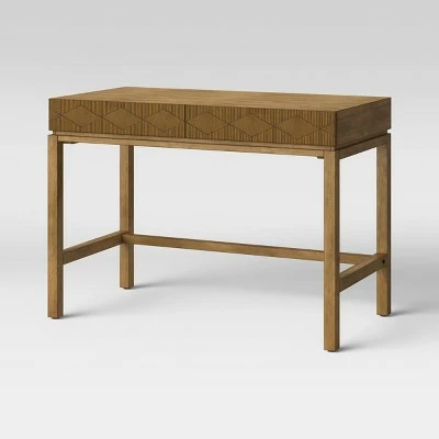 Create the perfect boho-inspired workspace to get your creative energy flowing with the Tachuri Wood Geometric Carved-Front Desk from Opalhouse™. This desk is crafted with a solid wood frame for stability and lasting use, while the geometric carved design on the front adds a stylish textured touch. Plus, the two drawers provide ample space for all your office materials. Whether you work from home or need a spot to tackle your taxes, this geometric carved desk provides the perfect spot to get anything accomplished.