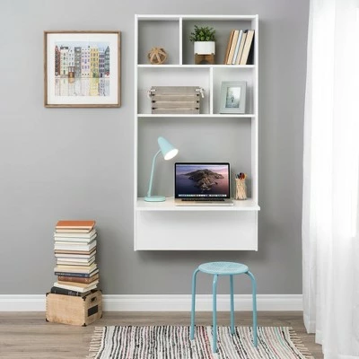 The Tall Floating Desk is an ingenious solution for smaller spaces like dorm rooms, apartments and bedrooms. Its compact design doesn’t take up much room on the wall and leaves your floor space free. Whether positioned as a standing or sitting desk, it is easy to mount using a 2-piece cleat system. Two small and two large storage compartments are suitable for books, speakers and essential workstation items. Their offset placement and the desk’s clean lines give it a modern aesthetic. Add a bulletin board for school notices and this versatile desk becomes a “family command center” and a spot for homework in the kitchen. Or, add a wall mounted mirror in the large open compartment, and easily transform it into a wall mounted vanity. Constructed from non-toxic, CARB-2 compliant, laminated composite woods. Ships ready to assemble, includes an instruction booklet for easy assembly and has a 5-year manufacturer’s limited parts warranty. Manufactured in Canada and meets all North American safety standards.