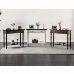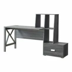 Enjoy the traditional accent details that highlight this transitional writing desk. Complete with three lower shelves and one drawer for easy organization, this white wood grain finish desk is a great solution to a work- or study-from-home space. Offering a sense of delicacy, this stylish desk is up to the task of creating a productive, comfortable workspace.