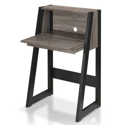 Turn the tables on conventional design with an enticing piece styled for maximum effect. The Homes: Inside + Out Tella Contemporary Storage Desk in Dark Gray by HOMES: Inside + Out is a multi-functional piece that can double as a trendy bar or convenient workspace. The flip-down cabinet is paired with a slim drawer so clutter can be hidden away but easily accessed. The two-tone frame is a true show stopper with its distressed gray panels and angular black legs.