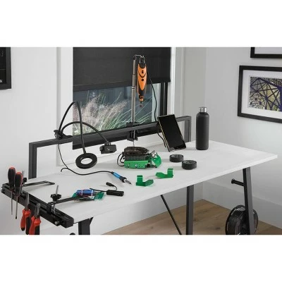 For a maker workspace that’s as visually appealing as it is functional, there’s nothing better than the Tinker Desk from OSP Home Furnishings™. Its distinctive profile stands out in every way and is suited to any task. You’ll love how our power strip bracket and cable management keep cords organized. Our ingenious multi-use accessory bar and integrated extrusion accessory hooks adds functionality by allowing hands-free videoing of projects and personalized tool and supply placement that keep utility movements intuitively to a minimum. The universal 4-channel aluminum bracket with two clamps allows detail tasks to stay steady and in place giving this work desk even more appeal. Crafted of durable steel tube construction, the Tinker Desk is designed to perform as beautifully as it looks.