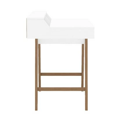 - White finish with light brown legs