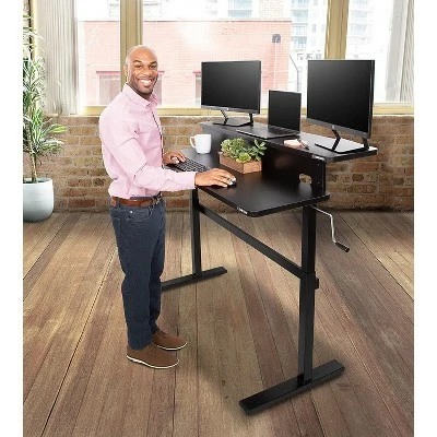 - EASY HEIGHT ADJUSTMENTS: Use the easy-turn crank to smoothly take your desk from sit to stand and set to your perfect ergonomic height, anywhere between 27.5” and 46” tall