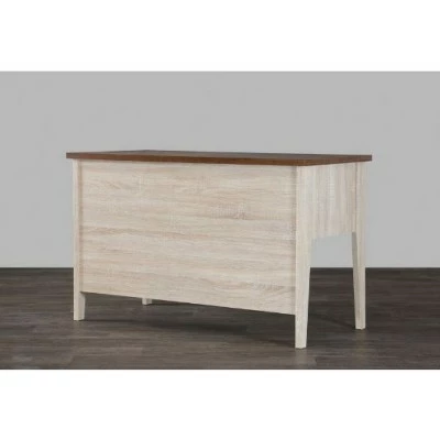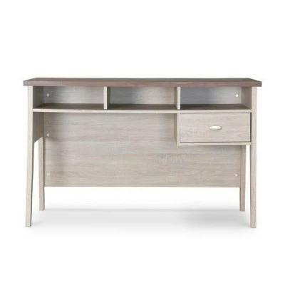 Our Tyler Writing Desk has flair to spare. This contemporary piece is more than a desk, it’s an accent in its own right. Sure, its generous storage space makes it practical, but its dashing design-featuring two-toned wood hues and a genuine metal drawer pull-encourages placement beyond home-office confines. Overal Dimensions: 29.5 inches high x 47.2 inches wide x 23.2 inches deep