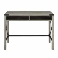 Compact-friendly meets an efficiency makeover with Saracina Home’s Urban Industrial Corner Desk with Pen Storage. This geometric gem fits right into corners, saving you space and stress. The desk’s blend of high-grade MDF wood and powder-coated steel makes for a sturdy study haven. A mesh-metal grid runs along its wall hugging perimeter, providing you space for hanging the adjustable pencil holder and ample room for cord management. Its urban, two-toned look is ideal for any modern city dweller, young student, or space-conscious individuals.
