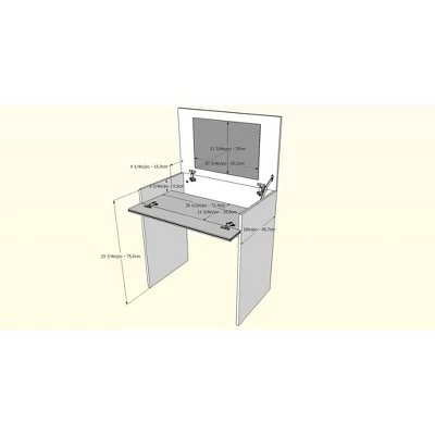 This Vanity with mirror/Writing Desk is offered in a trendy white finish with a scratch, stain and water resistant melamine top. When open, the vanity provides a convenient enclosed storage space and a mirror. Once closed, it turns into a small writing desk, perfect for your home office workspace.
