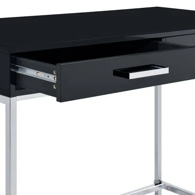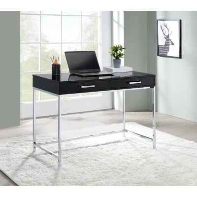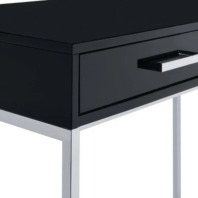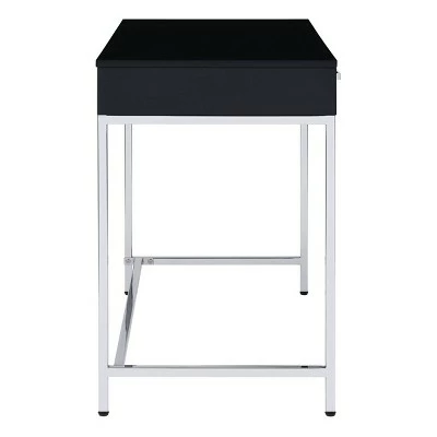 Create a chic home office with the Vivos Writing Desk. A modern, high-gloss work surface paired with a stunning Chrome base provide a sophisticated place to answer emails, write a quick note or pay bills. Stay organized with 2 drawers to store office accessories. Update a guest room or family room with a sophisticated workspace unique to your décor.