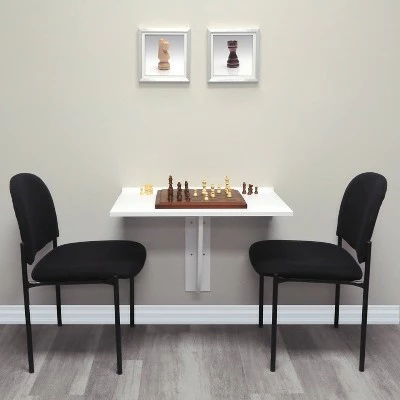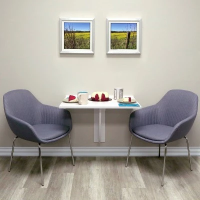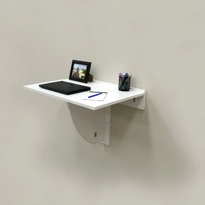This 30-in W x 21.5-in D x 21.5-H wall mounted desk shelf is ideal for small spaces and functional. It has a permanenent thin display shelf with foldable tabletop design. This multifunctional small desk is designed to fold down and to be kept out of the way until its next use. This shelf holds 30 lbs. and is easy to install. This versatile shelf is excellent for your home office needs.