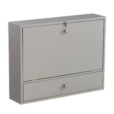 Unlatch a world of storage with the Aiden Lane Wall Mount Folding Laptop Desk. Four compartments, angled paper organizer, corkboard, and drawer keep you organized, while the wall mount design saves you space.