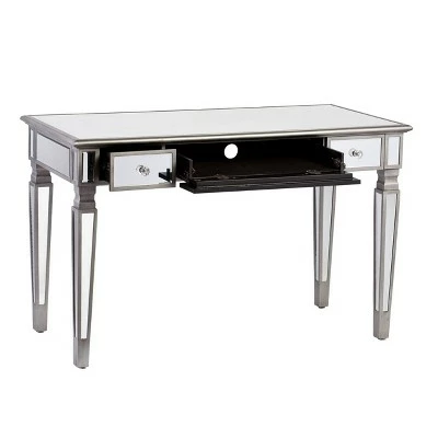Glam goes multifunctional with the Aiden Lane Warakin Mirrored Writing Desk. With two spacious drawers and a keyboard tray, this writing desk easily stores all your office essentials. Mirrored panels craft a high-end look in your space, while the versatile tabletop offers plenty of room for taking notes or putting on your makeup. Add this vanity desk to your dressing area and get ready in style, or station in your home office or entryway to keep your odds and ends organized.