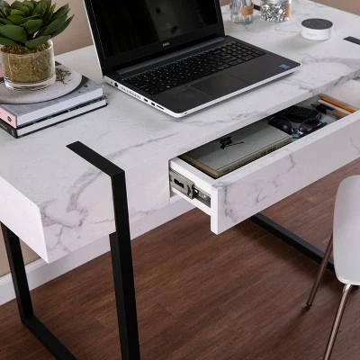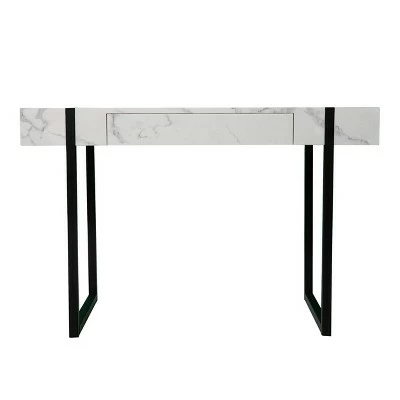 Elegantly blend style and function with the Aiden Lane Wennan Modern Faux Marble Desk. Sleek faux marble decorates the spacious tabletop, while sturdy inset legs add a touch of industrial styling to your modern décor. Place this writing desk in your home office to hold your laptop and organize documents, or station in your open concept living space to collect bills and finish homework. Make the most of your space when you bring home this multifunctional desk.