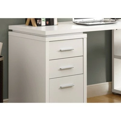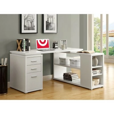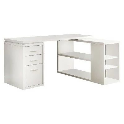 This “L” shaped computer Corner Desk from EveryRoom will be a stunning focal point in your contemporary home office. This simple and stylish piece features thick panels and clean lines. The writing desk offers a spacious work surface that is great for doing paperwork, or for using with a computer. The secondary surface offers additional work space and extra adjustable shelves that can be used for a printer or other important items. This piece also features two medium storage drawers and a convenient lateral file drawer below to help keep you organized.