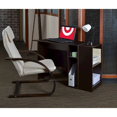Find your niche with the versatile and modern Niche collection. Simple, clean and compact, the Niche line is sure to please. The Niche Desk and Bookcase set is the perfect accompaniment to any home or bedroom office. Its rich dark Truffle finish shows subtle wood grain and is sure to please. Both the desk and bookcase have two shelves each for display and storage. One of the bookcase shelves is adjustable and it can be moved in 1-inch increments. No tools LockDowel assembly allows pieces to simply snap together and lock into place for a sturdy, hassle-free build. No more searching for the right size screwdriver or dropping tiny screws. Just snap into place and go. Less hardware and fewer small parts means less plastic packaging and less waste. Its compact design makes it the perfect fit for dorm rooms, living rooms, any room! When used next to each other, the bookcase adds extra surface area to the desk. Make Niche a part of your home or office today.
