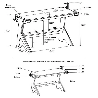 - Features: Fixed Shelves, Headphone Hook, Cup Holder